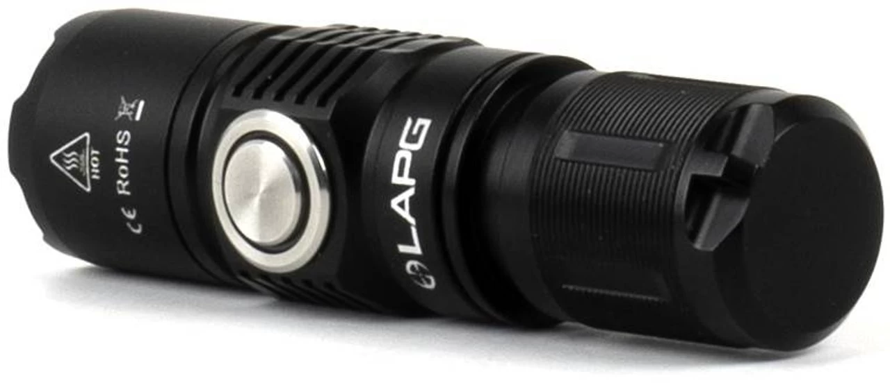 The LA Police Gear F1 1,000 Lumen Flashlight is a mini rechargeable side switch LED flashlight. It has a CREE XP-L2 LED, which when powered by the included 16340 RCR123A battery has a max output of 1,000 lumens. This tactical flashlight has four output modes (Turbo, High, Medium, and Low), as well as a strobe function. It also has a magnetic tail cap for hands-free use.