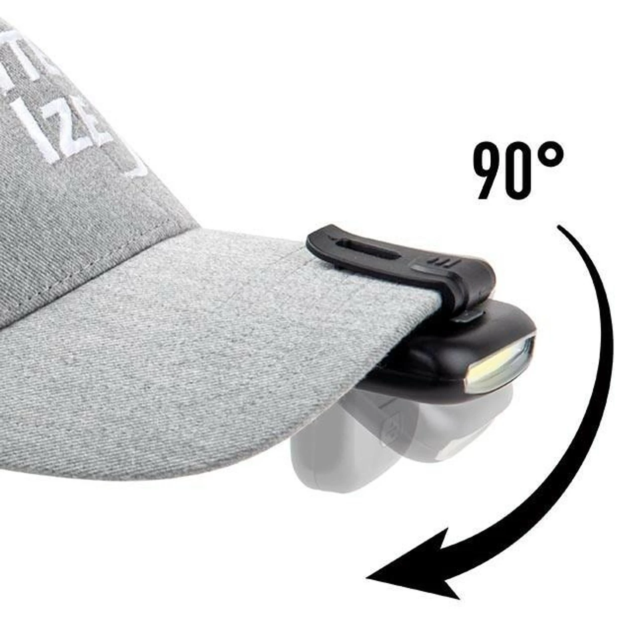 - Clip light body tilts 180° (90° when attached to a hat brim)