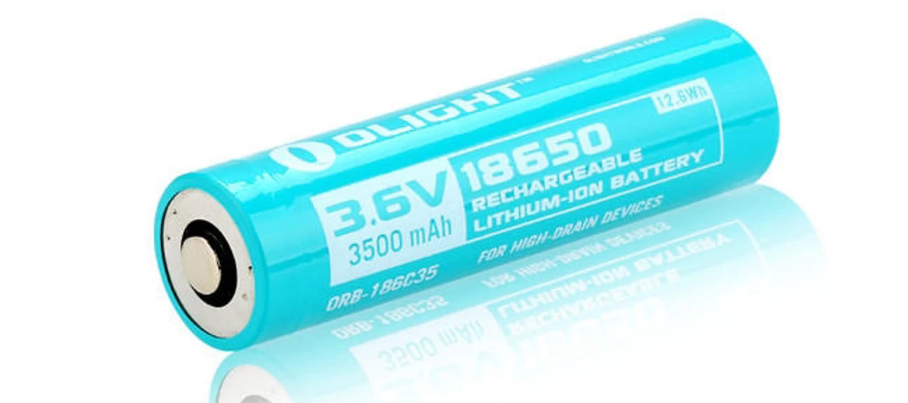 The Olight 18650 Customized 3500mAh Battery specifically compatible for magnetic charging in the Perun, Baton Pro, S30R II, S30R III and S2R Baton.