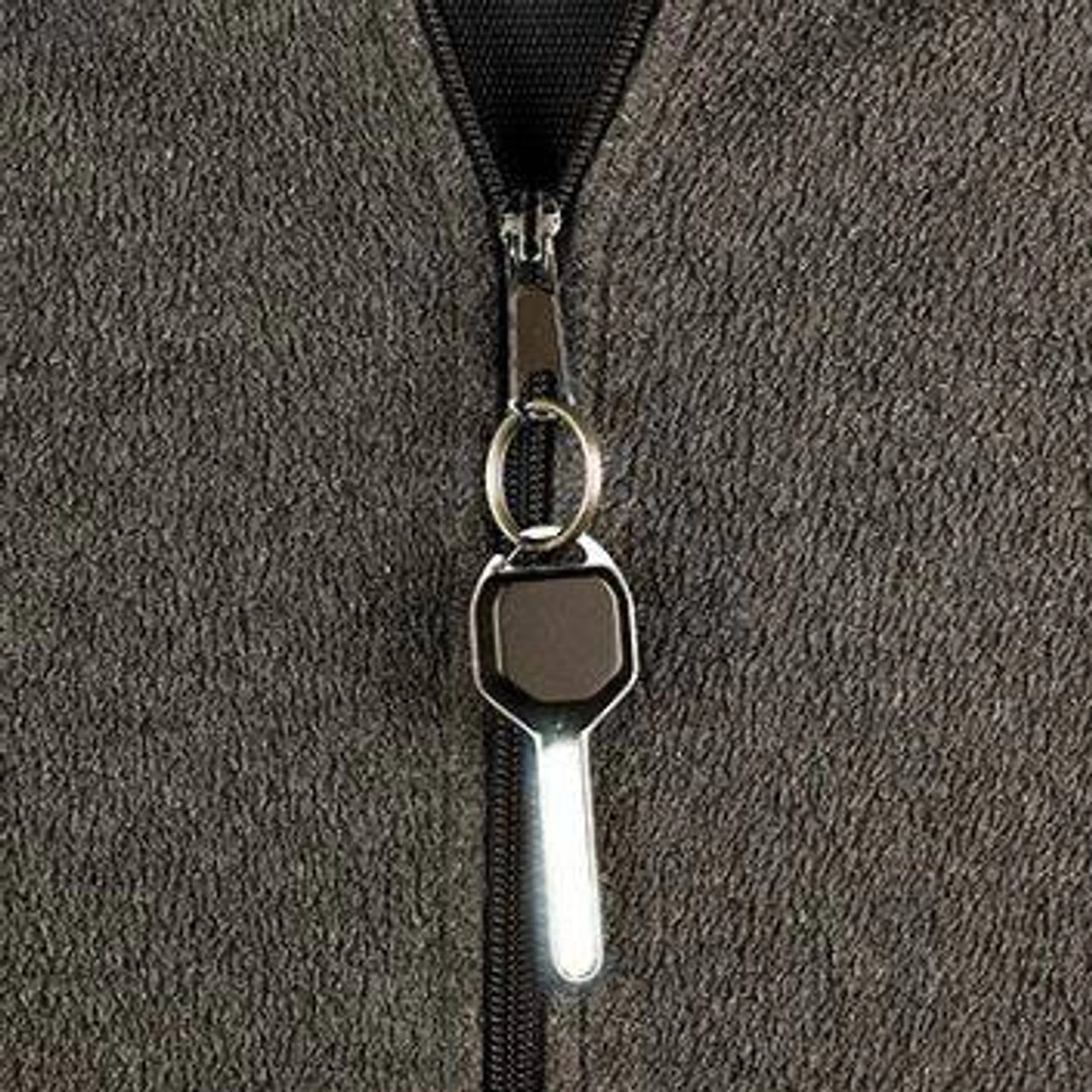 - Spring-loaded clip attaches to key rings, zippers, lanyards, etc.