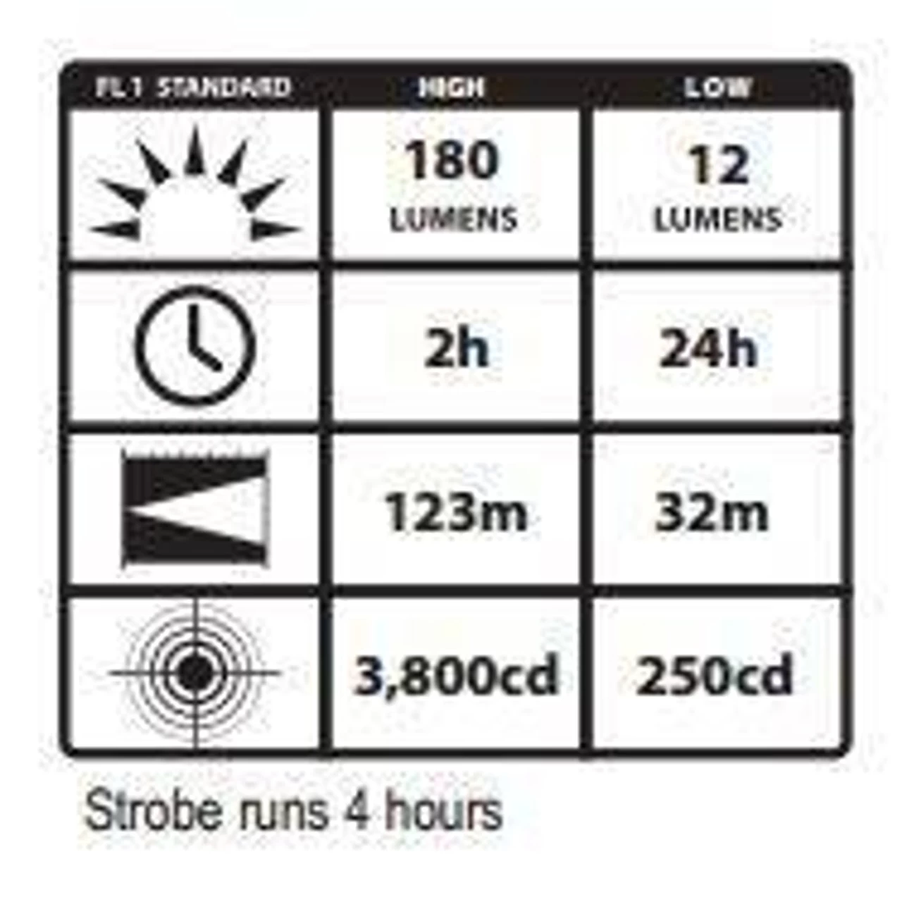 - Low for longer run time: 22 lumens; 420 candela; 41m beam; runs 24 hours
