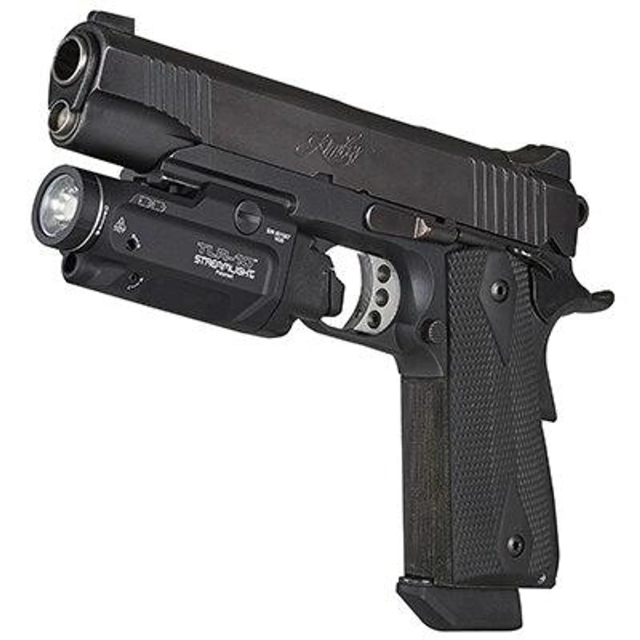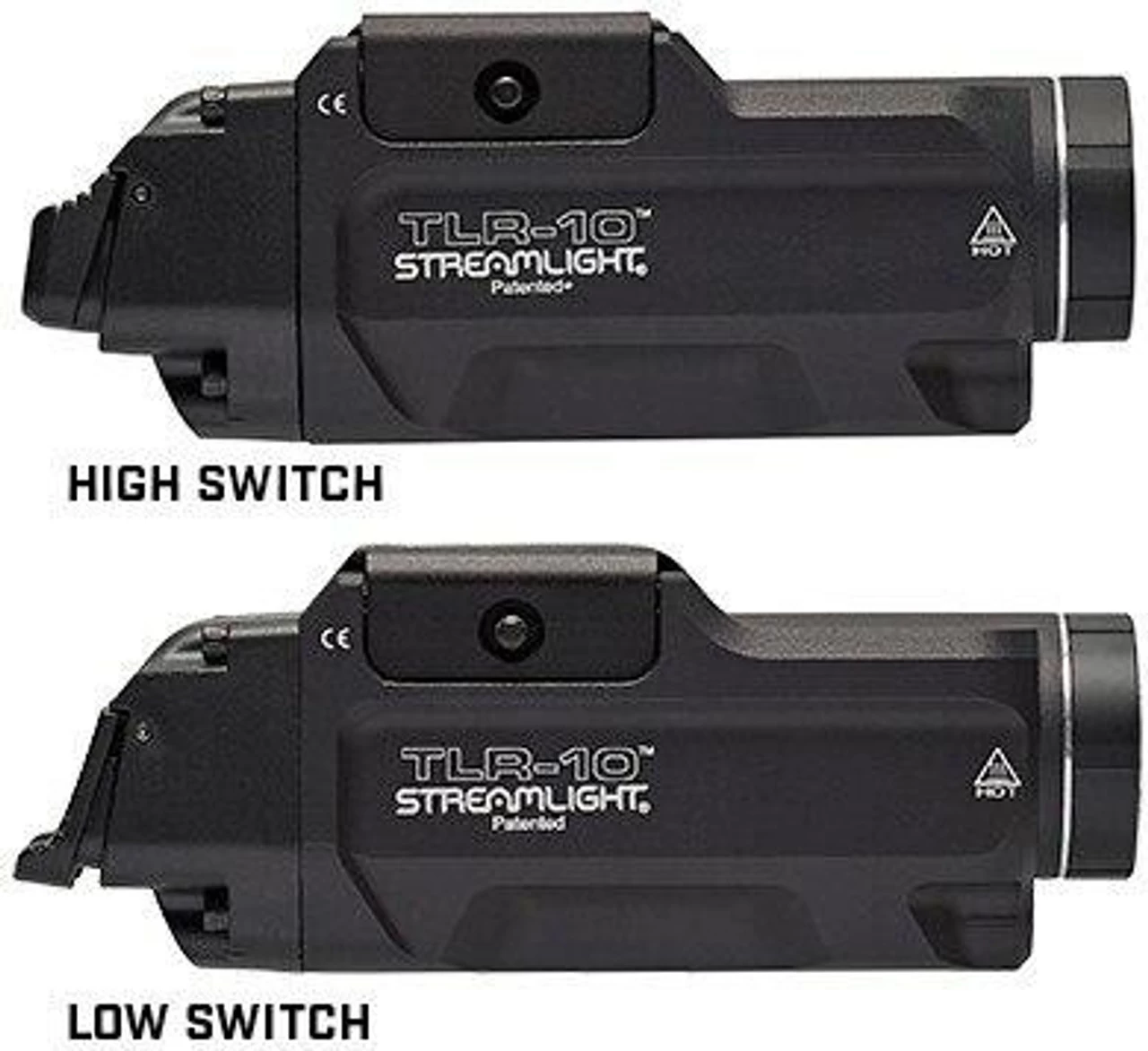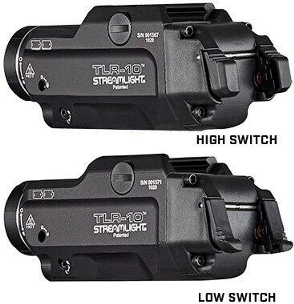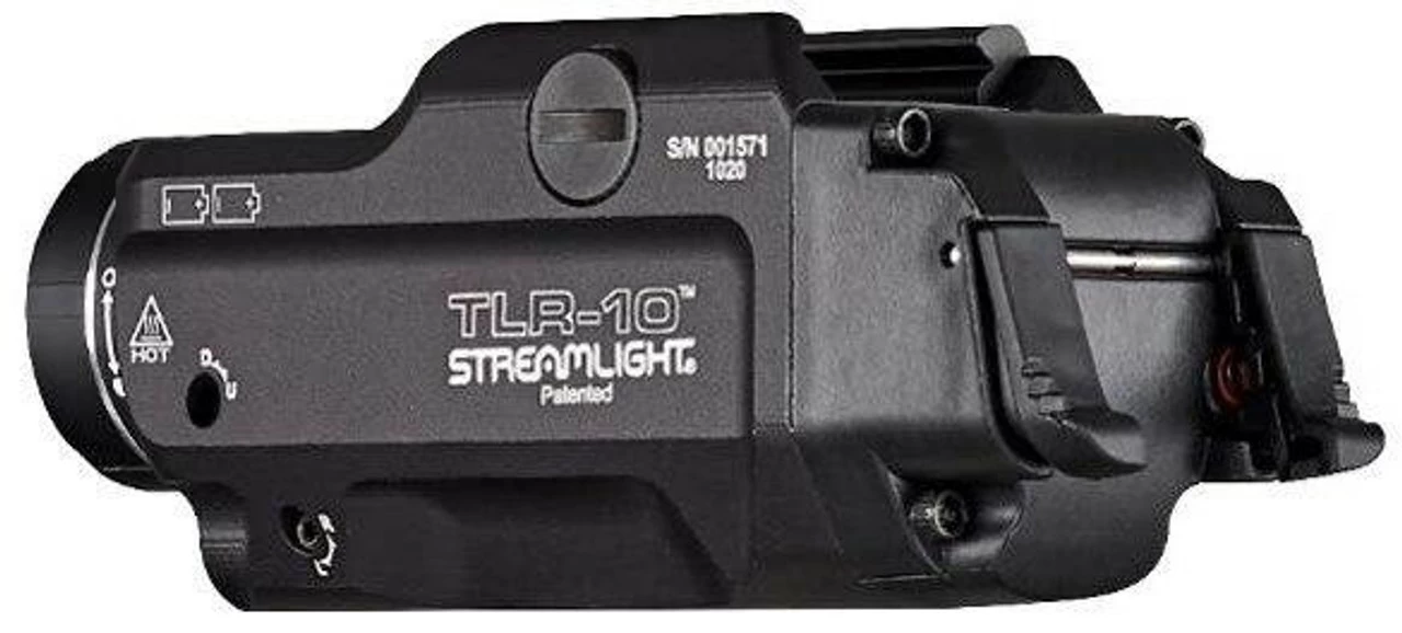 The Streamlight TLR-10 FLEX 1,000 Lumen Weapon Light with integrated red laser includes customized ambidextrous switches with either a low or high position to match your shooting style. This tactical gun light has a rail clamp that is designed to rapidly attach/detach from full frame weapons.