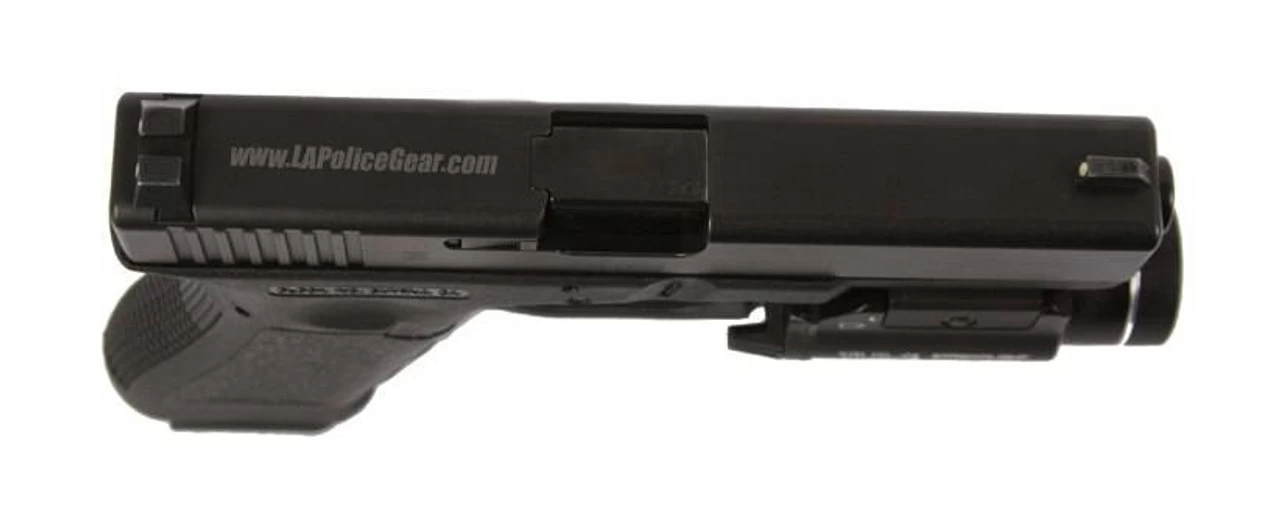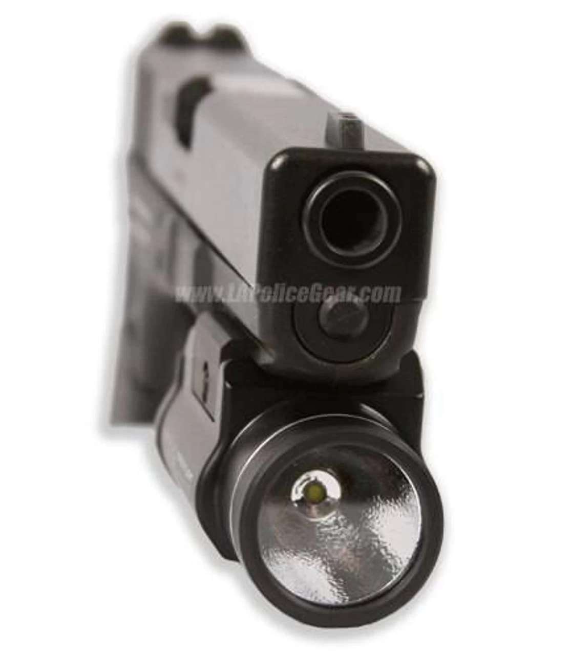 C4 LED with blinding beam (300 lumens) with optimum peripheral illumination will not break or burn out! Up to 2.5 hr. Run Time. Rail grip clamp system securely attaches/detaches quickly and safely with no tools and without putting your hands in front of muzzle. Ambidextrous momentary/steady on-off switch, Double tap of momentary paddle within 0.4 seconds activates strobe. (TLR-1s only).