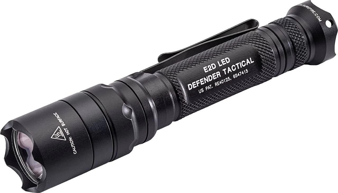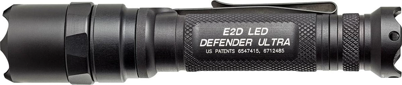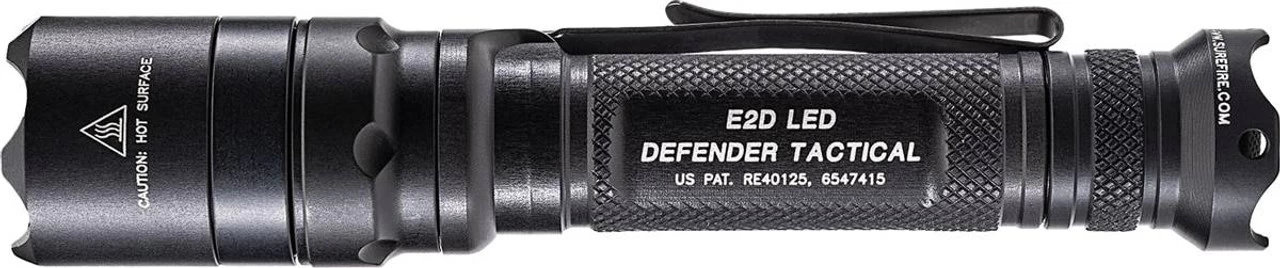 The Surefire E2D Defender 1000 Lumen Tactical LED Flashlight is constructed with aerospace aluminum, its crenellated Strike Bezel and scalloped tail cap transforms this light into impact weapon as well. The Defender body also features a Type III Mil-Spec hard-anodized coating for abrasion and corrosion resistance in extreme weather situations or harsh environments. A bolstered dual-function pocket clip makes bezel-up or bezel-down pocket storage a breeze