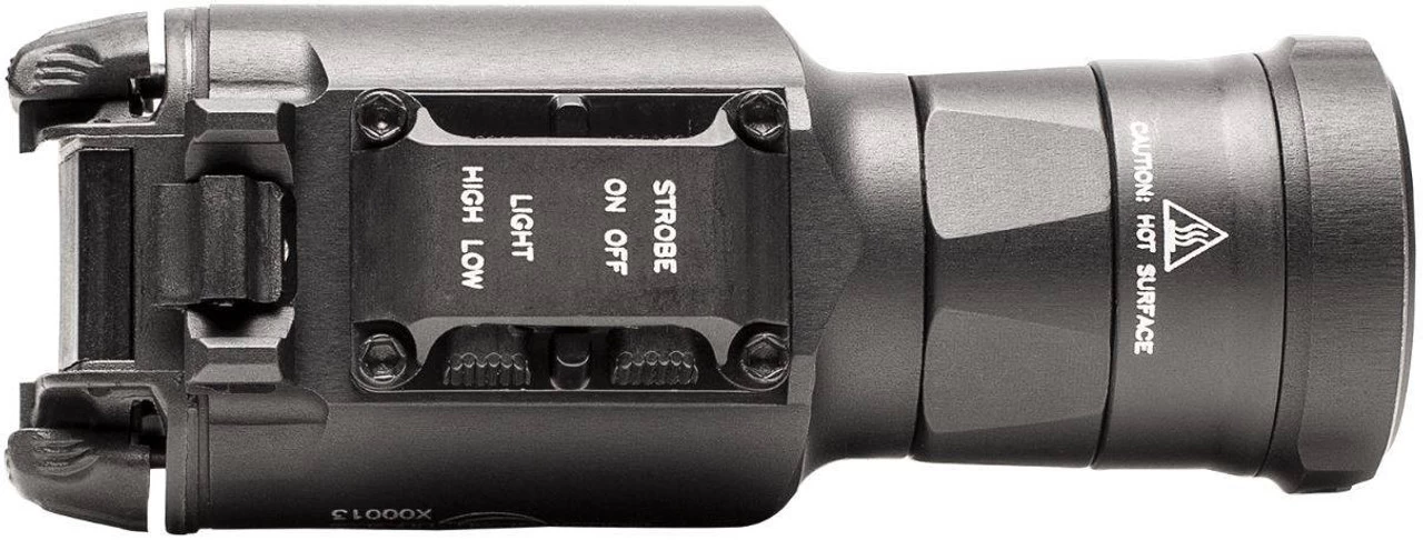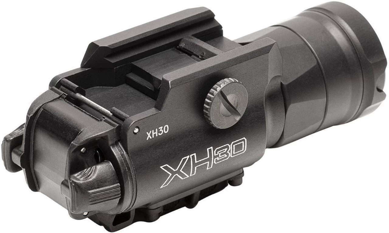 The XH30 MasterFire Weaponlight is uniquely engineered to secure the weapon at an advantageous angle and to instantly activate the WeaponLight during quick deployment. This weaponlight fits most railed pistols and interfaces with SureFire’s revolutionary MasterFire Rapid Deploy Holster. The aerospace-aluminum body is Mil-Spec hard anodized for superior toughness and sealed for weatherproofing. The XH30’s recoil-proof LED is paired with a Total Internal Reflection (TIR) lens that creates a far-reaching, 1,000-lumen beam with ample surrounding light or 300 lumens when less light is needed. The ambidextrous switching allows easy, one-finger control of the WeaponLight when it is out of the holster.